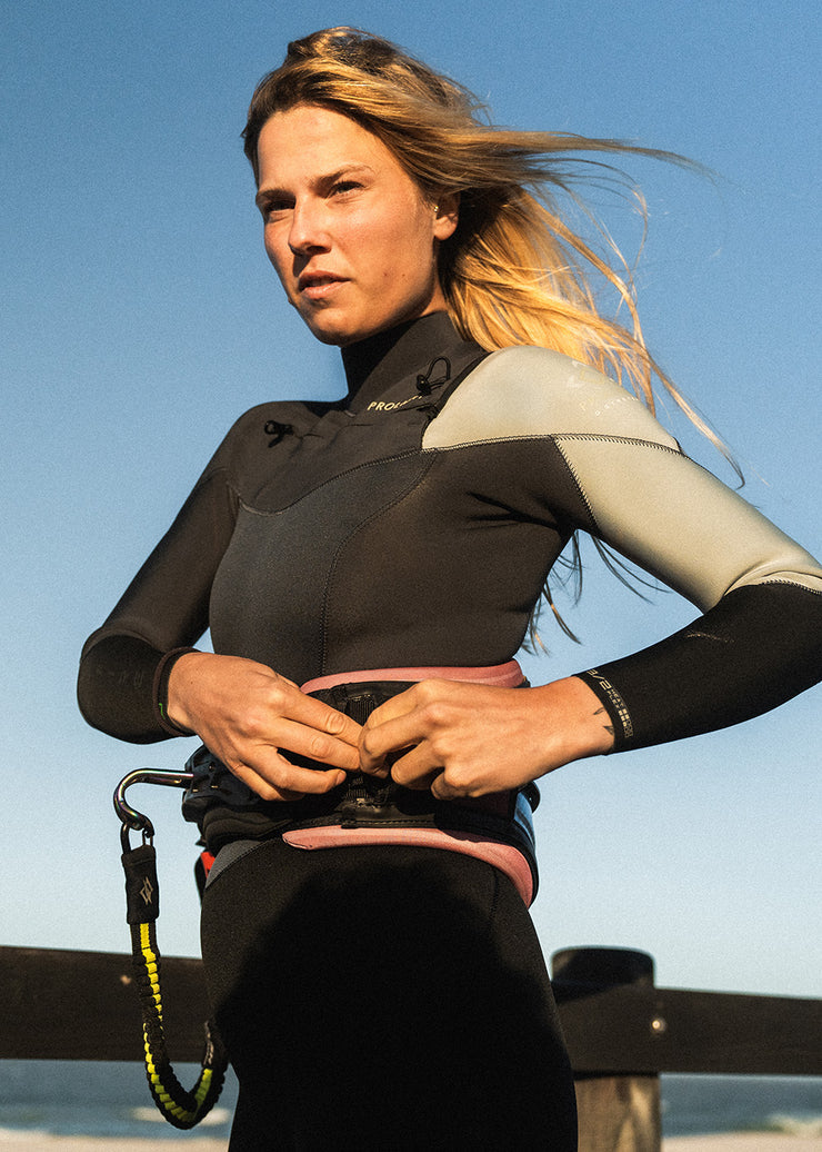 Prolimit Shorty Dames Fire Sunset Free-X 3/2MM is een veelzijdige shorty voor zomerse sessies waarop je net wat extra warmte en bescherming wilt zonder je schouders te beperken. De 3/2 mm neopreenopbouw houdt je core comfortabel wanneer wind en spray over natte huid trekken, terwijl de korte mouwen schaafplekken voorkomen op dek, rails of peddel. De damespasvorm sluit strak en zeker rond borst, taille en heupen, zodat alles op zijn plek blijft bij waterstarts, duckdives of een sprong van de boot. De Free-X backzip opent ruim, waardoor instappen op de parkeerplaats of in de kuip snel en gecontroleerd gaat; gesloten ligt de seal vlak en voelt hij niet massief onder een impactvest of trapeze. Flatlock-naden liggen glad tegen de huid en ademen licht, zodat je ook tijdens inspanning koel blijft. De kraag is zacht afgewerkt en de mouwboorden irriteren niet, waardoor je je volledig kunt focussen op ritme, lijnkeuze en timing in wisselvallig zomerweer.